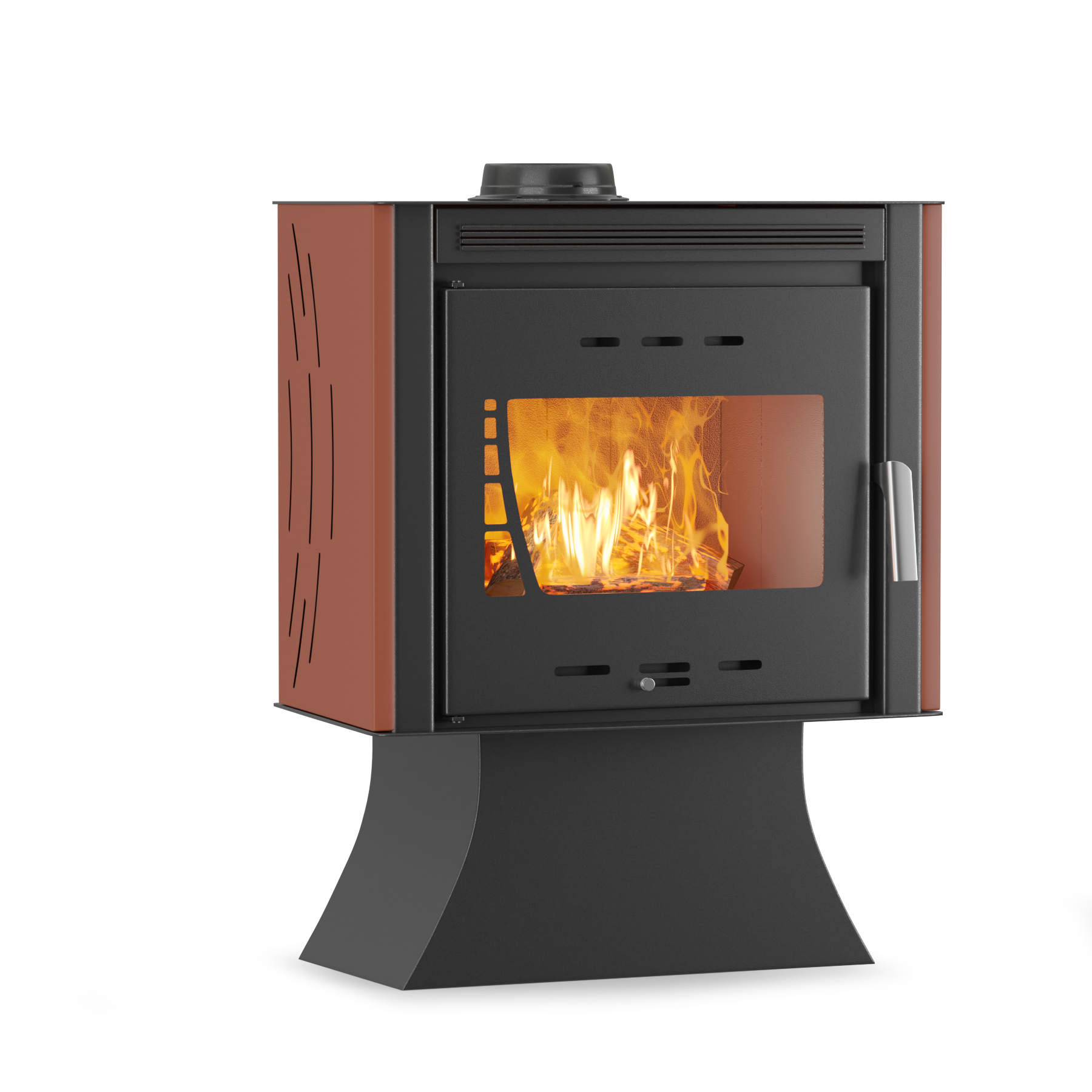 Διαθέτει ροοστατικό διακόπτη για το βεντιλατέρ θέρμανσης. Πυρίμαχο κεραμικό κρύσταλλο 4mm αντοχής έως 750°C. Σκελετός από χάλυβα 2,5mm και στο χώρο καύσης βερμικουλίτης SF750 25mm. Δοχείο(συρτάρι) συλλογής στάχτης στο κάτω μέρος της.