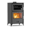 Φούρνος εμαγιέ, με ταψί, σχάρα και θερμόμετρο 0-300°C. Πυρίμαχο κεραμικό κρύσταλλο 4mm αντοχής έως 750°C. Σκελετός από χάλυβα 2,5mm και στο χώρο καύσης βερμικουλίτης SF750 25mm. Δοχείο(συρτάρι) συλλογής στάχτης στο κάτω μέρος της.